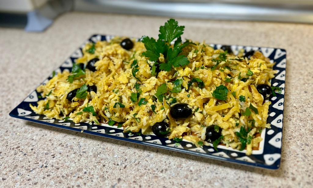 - 600g salted codfish, desalted and shredded